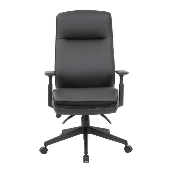 This Caressoft high back executive chair brings comfort and stability to any office environment. It features beautiful and durable Caressoft upholstery and high-back styling with exemplary lumbar support. Adjustable height arms. In addition, the chair has pneumatic gas lift seat height adjustment, an adjustable tilt tension control, a spring tilt mechanism, and locks in the upright position. Its large 27” 5 star nylon base provides stability while affording plenty of mobility thanks to its five hooded double wheel casters.