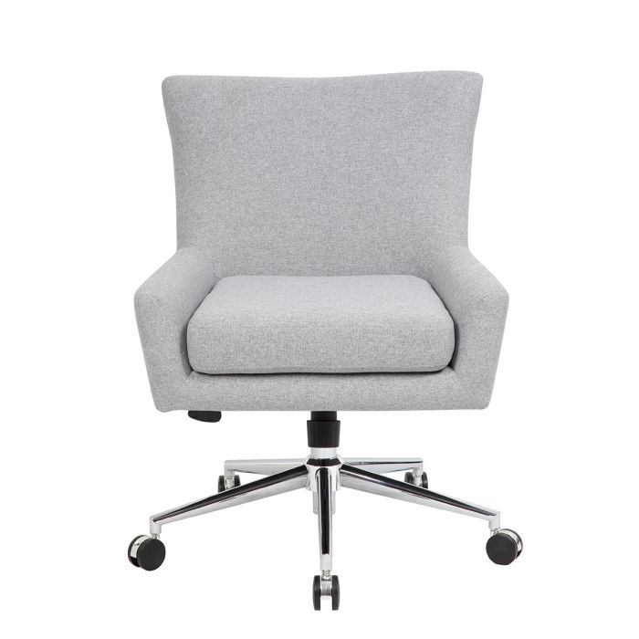 The Carson modern executive chair is upholstered in commercial grade granite linen for a casual, professional look that’s perfect for a variety of office environments. It features an upright locking position, adjustable tilt tension control, and pneumatic gas lift seat height adjustment for a seat height that ranges from 19.5-inch to 22-inch. All of this rests atop a sturdy 27-inch high crown chrome base with five hooded double wheel casters.