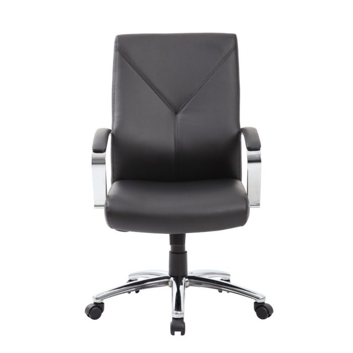 This luxurious chair is upholstered with LeatherPlus, which is known for its supreme softness and durability. Added comfort is achieved by the soft and supple padding over the metal chrome-plated arms. With its adjustable tilt tension control and upright locking position, this chair is a marvel. It has a large, 27-inch chrome base with adjustable height options for the pneumatic gas lift seat. This chair is a step further when it comes to true luxury seating.