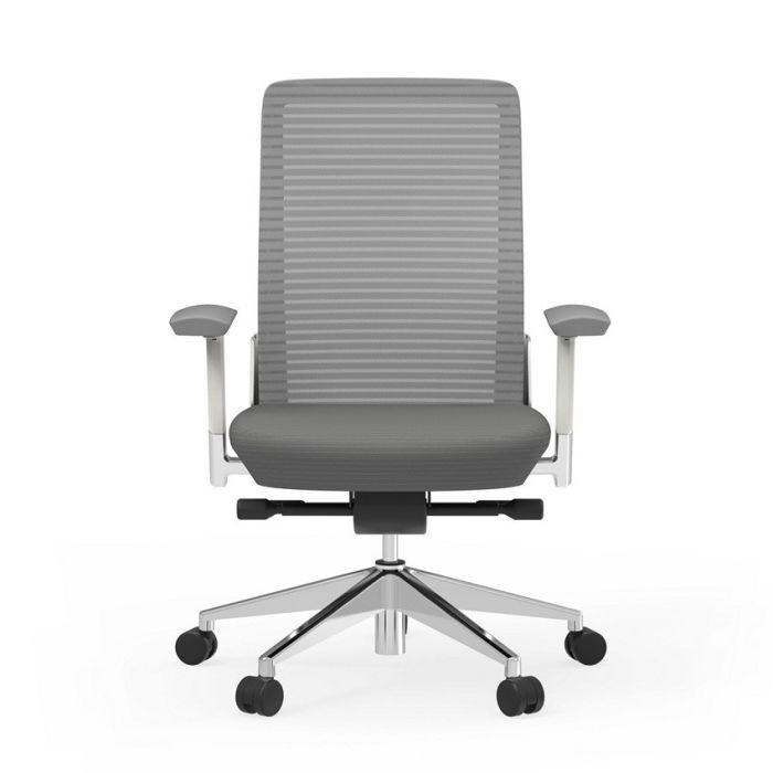 - Frame: Available in black frame with matching black mesh and arm pads or white frame with gray mesh and arm pads.
