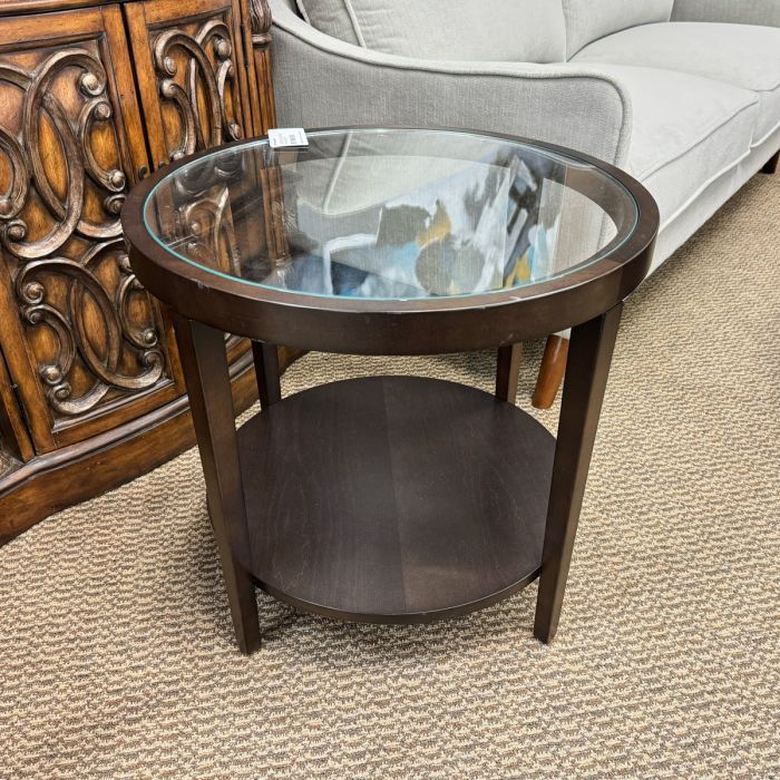 Used 24" Round End Table with Glass (Espresso) OCC1845-008