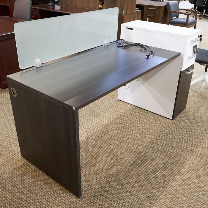 Used 24x68 Computer Tower Desk with Power (Grey & White) DEE1827-019