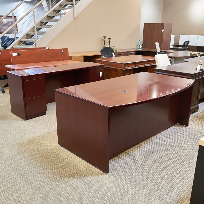 Used 36x72 Bow Top Executive Desk & Credenza Set (Mahogany) DEE9999-1637