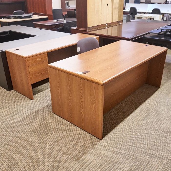 Used 36x72 Laminate Desk & Kneehole Credenza (Oak) DEE1776-003