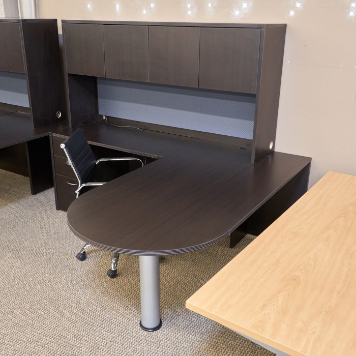Used 36x72 Left L-Shape Bullet Desk with Hutch (Espresso) DEL1792-035