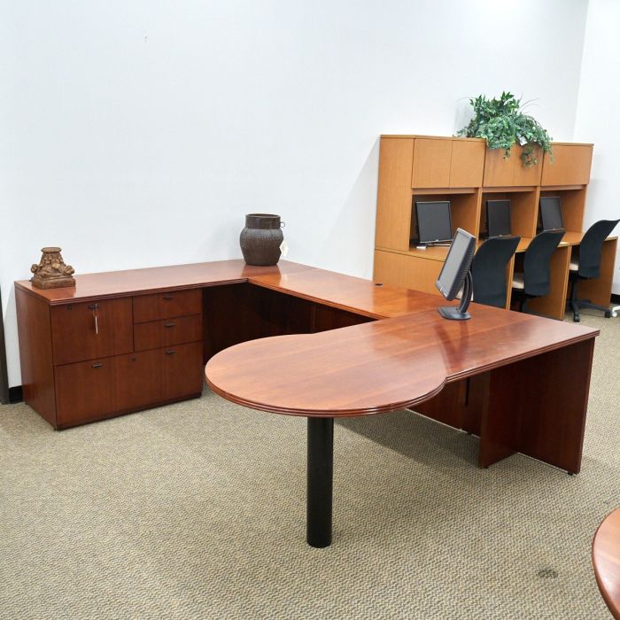 Used 36x72 Left U-Shape Desk with Multi File (Cherry) DEU1738-007