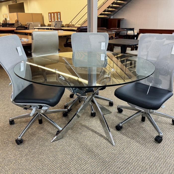 Used 52" Round Glass Top Break Room Table with Chrome Base CTB1838-010