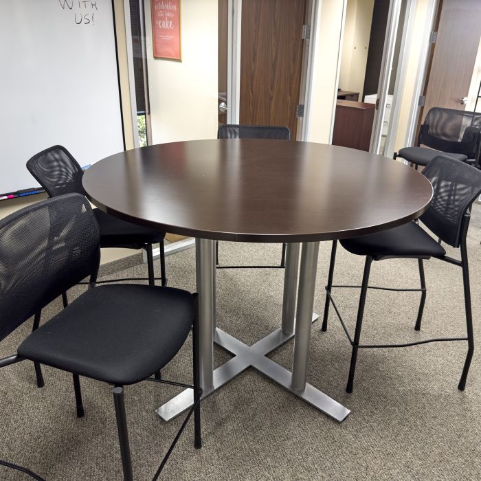 Used 60" Inch Bar Height Round Meeting Table (Espresso & Silver) CTB1872-046