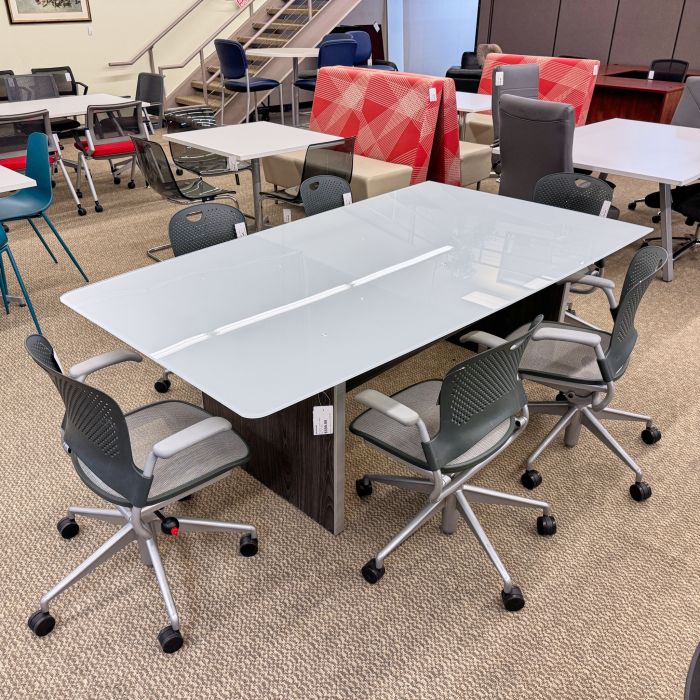Used 7' Half Boat Glass Top Conference Table (White & Grey) CTB1903-002