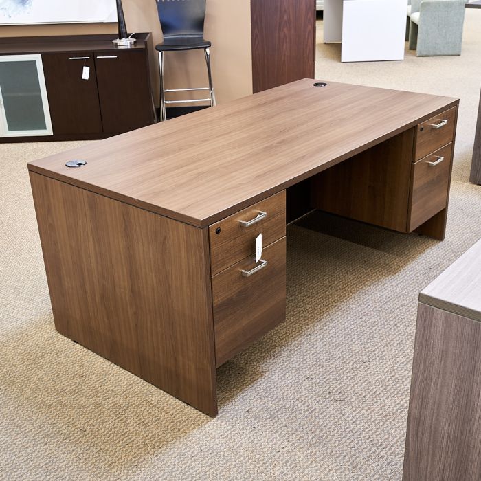 Used 71x35 Executive Desk with 2 Box-File Pedestals (Modern Walnut) DEE9999-1648