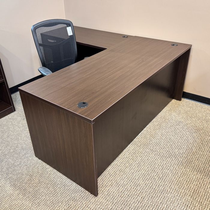 Used 71x36 Left L-Shape Desk with BBF & FF Peds (Espresso) DEL1897-001