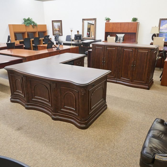 Used AICO Right L-Shaped Desk with 2 Door Cabinet (Dark Walnut) DEL1799-001