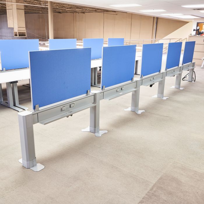 Used AMQ 5-Station ILINE Powered Beams with Privacy Screens (Grey & Blue) BEN1884-018