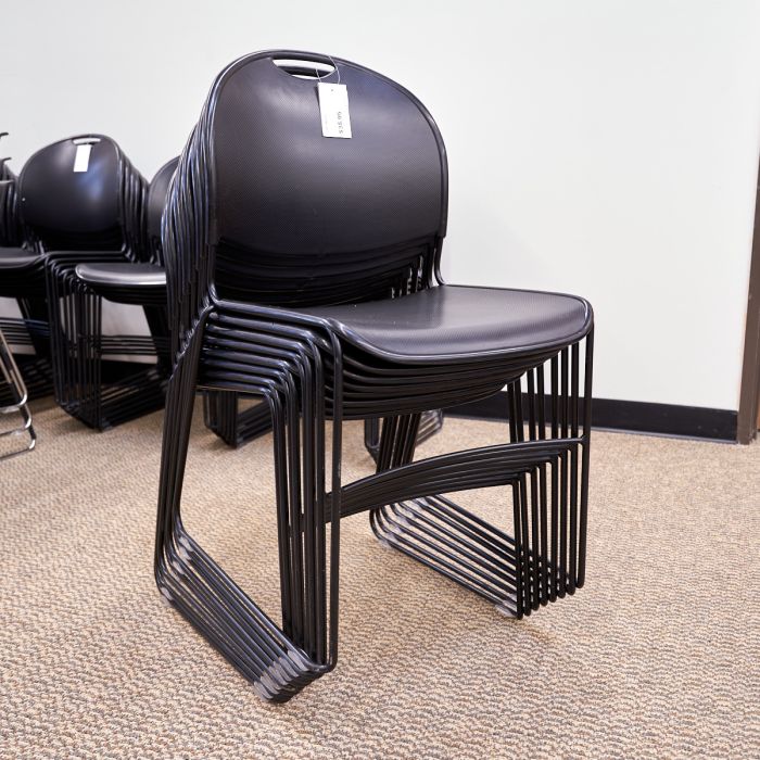 Used Armless Metal Framed Plastic Seat Stacking Guest Chair (Black) CHK1849-002