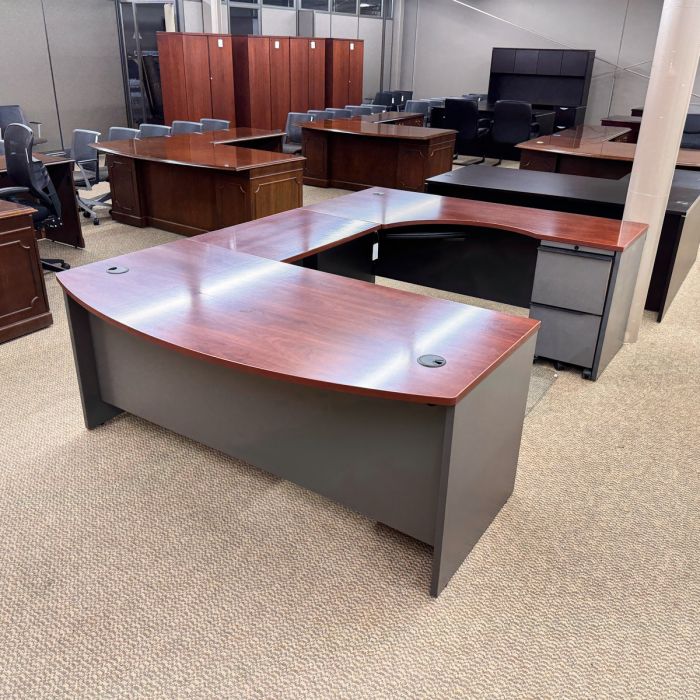 Used Bow Top Right U-Shape Desk (Cherry & Grey) DEU1751-001