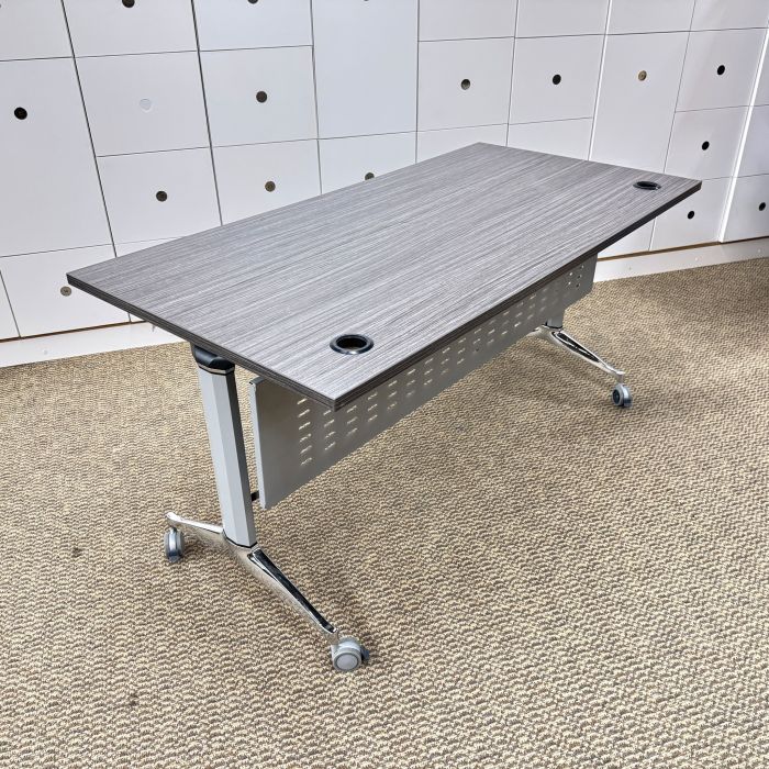 Used Clear Design 30"x60" Folding Nesting Training Table (Elm Grey & Chrome) TRN1882-014