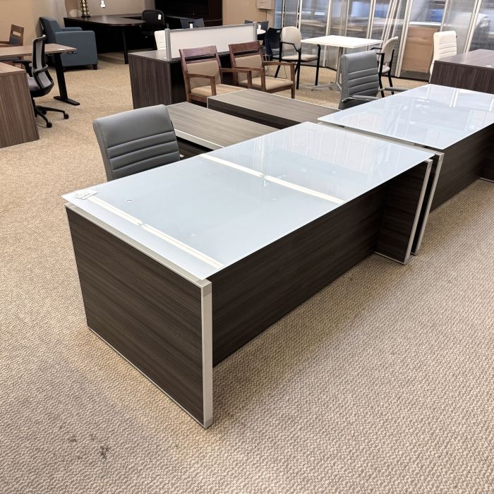 Used Corp Design 72x75 Left L-Shape Glass Top Desk with Mobile File (Grigio) DEL1891-001