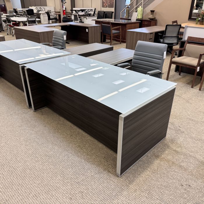 Used Corp Design 72x75 Right L-Shape Glass Top Desk with Mobile File (Grigio) DEL1891-010