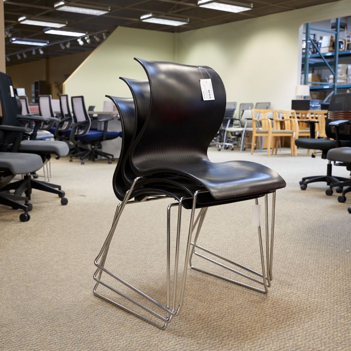 Used Curved Back Plastic Office Stack Chair (Black & Chrome) CHK1849-004