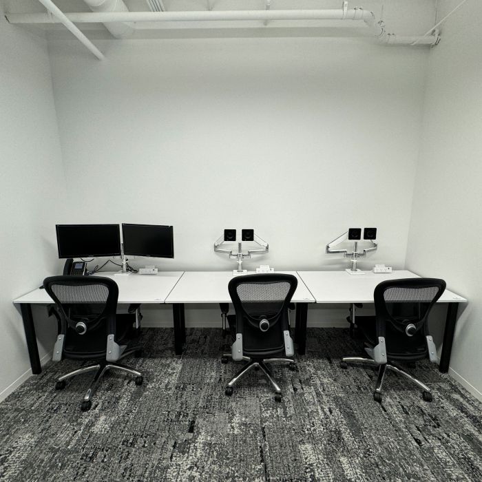 Used Enwork Bench Desking Row of 3 with extended Power module, Data runs, and Humanscale Monitor Arms. Monitors free while supplies last.