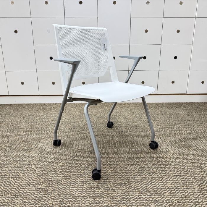 Used Haworth Very Side Chairs with Casters (White & Silver) CHS1882-018