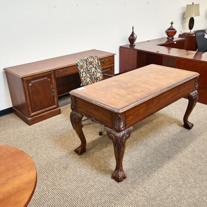 Used Hooker Ball & Claw Desk with Credenza Set (Cognac) DEE1766-001