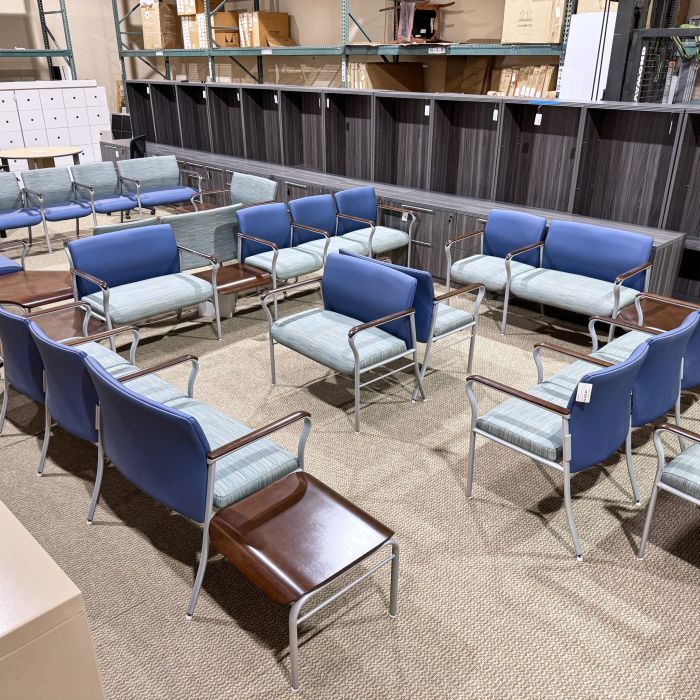 Used National Confide 11-Piece Bariatric Medical Grade Lobby Seating Set (Dark Blue & Walnut) CHL1900-001