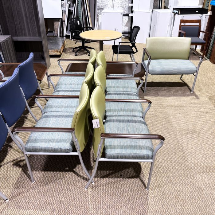 Used National Confide 5-Piece Bariatric Medical Grade Lobby Seating Set (Green & Walnut) CHL1900-007