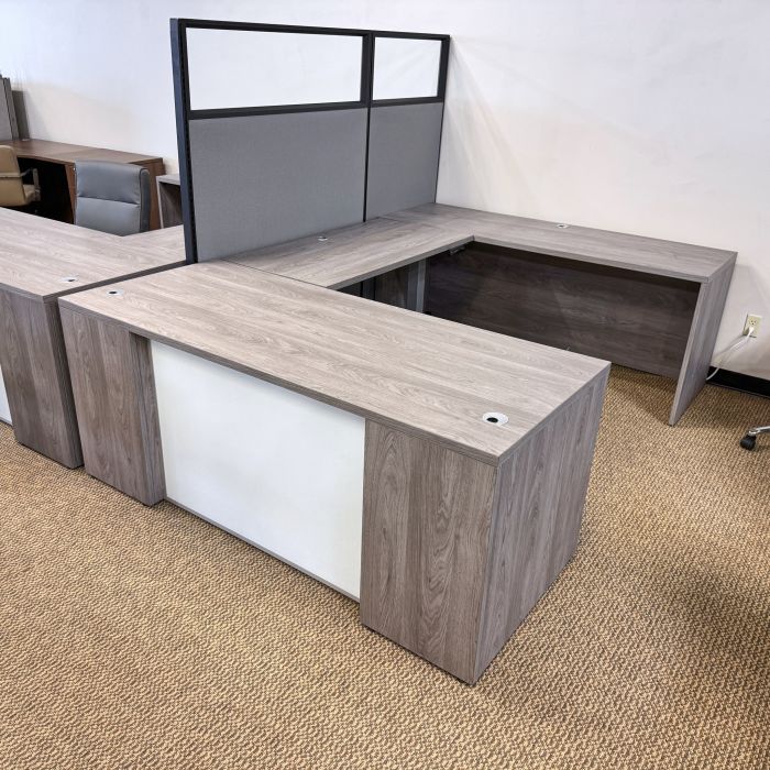 Used OFD Ultra Premium 72" Right U-Shape Desk with Height Adjustable Bridge (Grey Oak) DEU1885-05