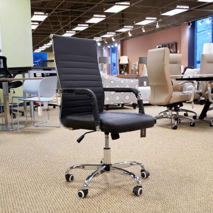 Used Ribbed Back Modern Executive Office Chair (Black & Chrome) CHE1749-027