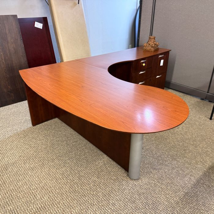 Used Right Laminate P-Top L-Shape Desk (Honey) DEL9999-1653
