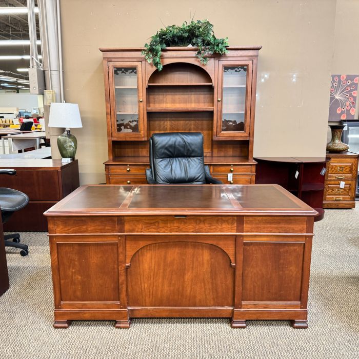 Used Sligh Leather Top Desk & Credenza with Hutch (Walnut) DEE1847-001