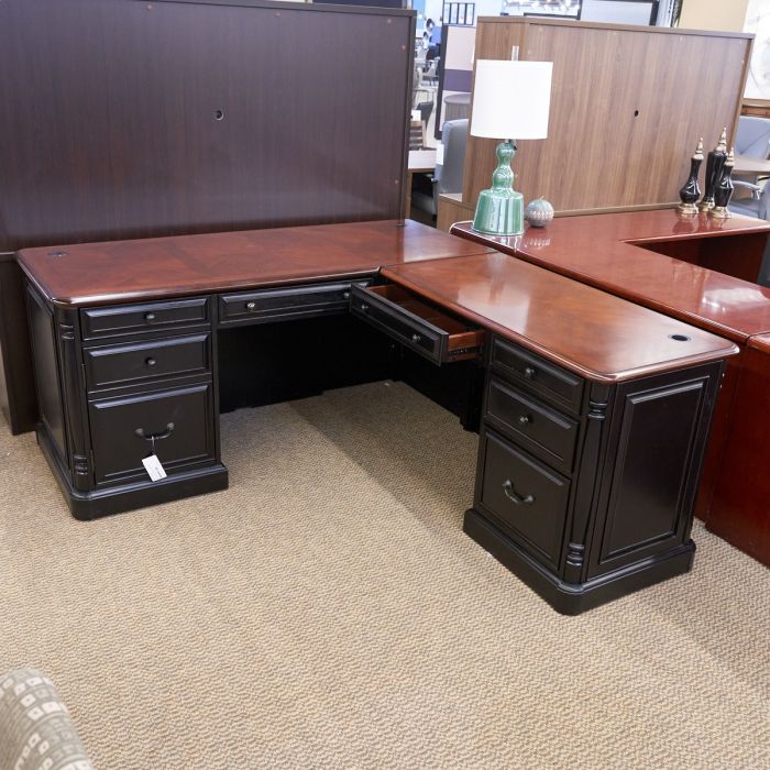 Used Traditional 68x24 Right L-Shaped Desk (Black & Mahogany) DEL1794-026