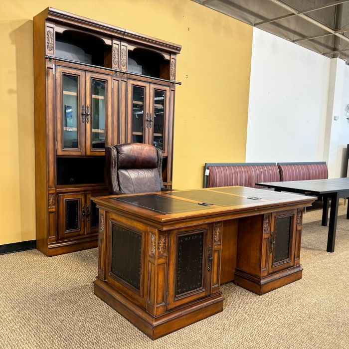 Used Traditional Desk & 2 Piece Wall Unit (Walnut) DEE9999-1650