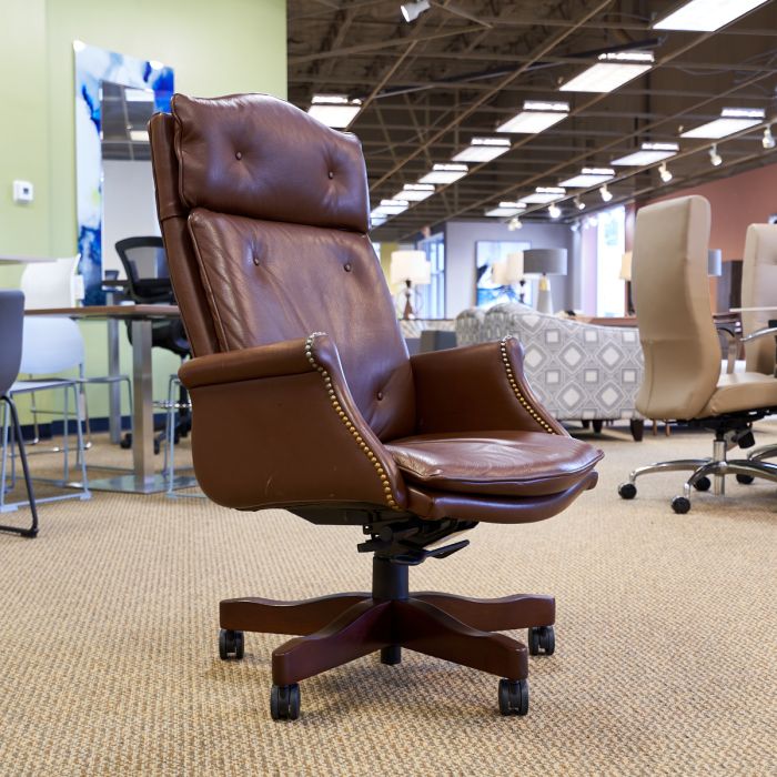Used Traditional Leather Executive Office Chair (Brown & Walnut) CHE1855-002