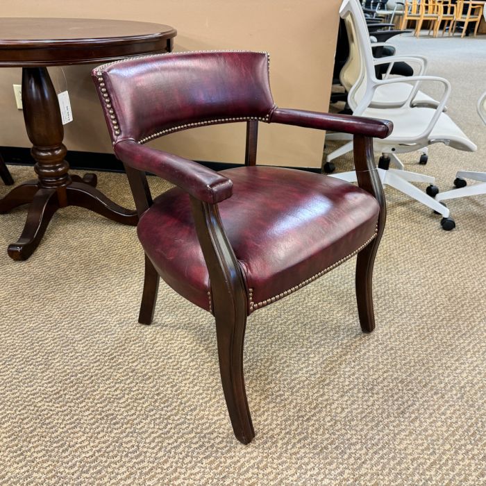 Used Traditional Nail Head Guest Side Chair (Burgundy & Mahogany) CHS9999-1719