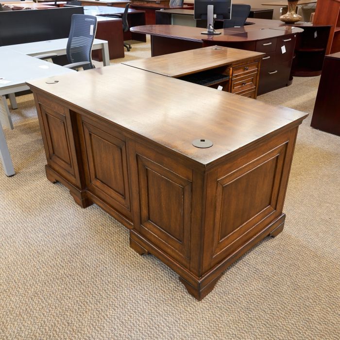Used Traditional Right L-Shape Step Front Desk (Dark Oak) DEL1792-025