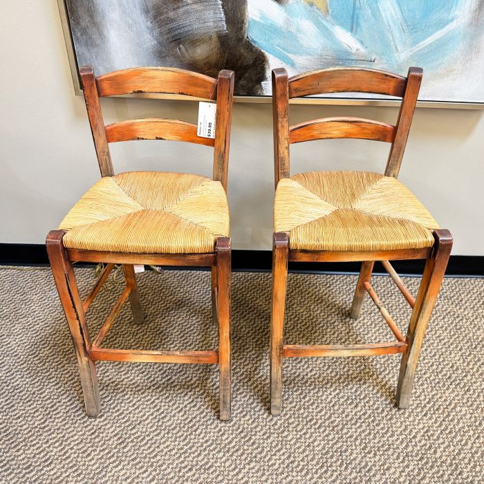 Used Wicker Wood Stool Set of 2 CBA9999-1796